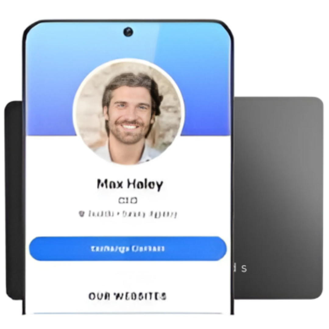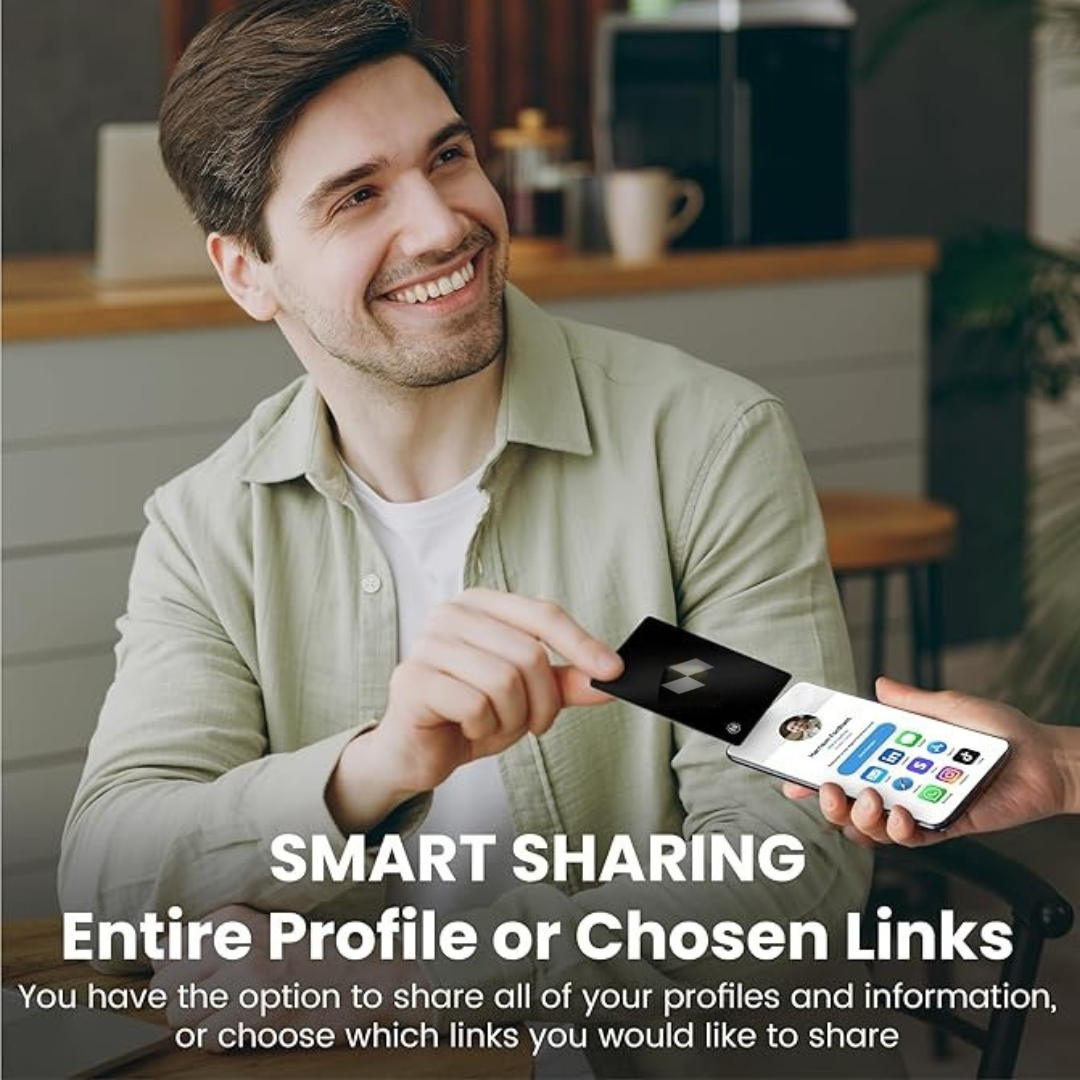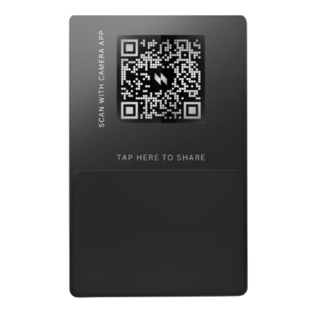 Simply tap your card against a smartphone or let someone scan the QR code to instantly share your details. It works on both iPhone and Android devices without needing an app.