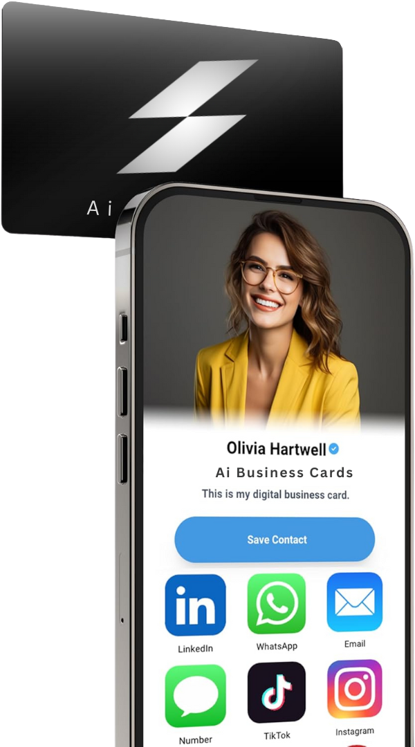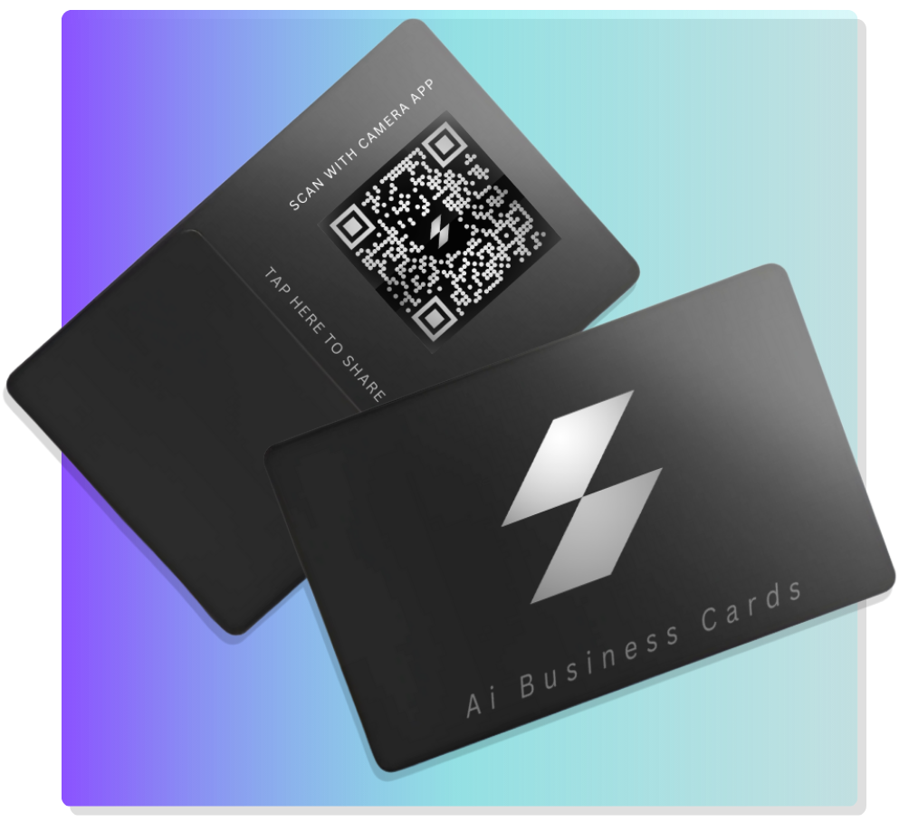 Nope! The AI Business Card works instantly with NFC and QR code technology—no apps or downloads needed to share your details.